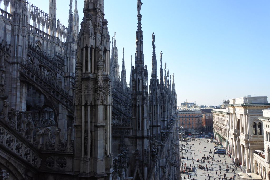 • Domul din Milano, considerata una dintre cele mai mari catedrale gotice din lume. Acoperisul sau merita vizitat (ai optiune de scari sau lift) pentru o panorama a orasului si pentru a admira de aproape dantelariile constructiei si statuile numeroase, la fel si usa de bronz de la intrare ce te va uimi prin atentia acordata detaliilor.